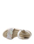Chiusura con velcro ricoperto ma microstrass colorati effetto treccia e fibbia regolabili.