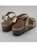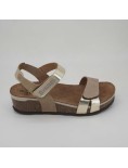 Sabatini Sandali Bio Zeppa Sughero Gel Velcro Pelle Beige Platino