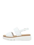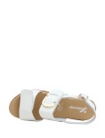 Presenta 2 fasce regolabili a velcro con con accessorio fibbia e cinturino al tallone con fibbia regolabile,