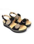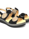 Sandali neri con zeppa Cinzia Soft realizzati in camoscio e dotati di chiusura con fibbia e doppio velcro .