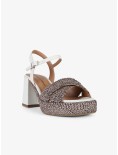 Sandali con Tacco largo e Plateau in Pelle Bianco e Plateau e incrocio in Rafia Persico Bruno Moro l