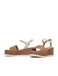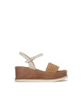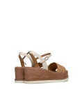 Sandali con Zeppa in Camoscio Color Legno e Dettaglio in Raffia Jil