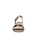 Questi eleganti sandali da donna Gianmarco Sorelli modello Romy presentano una tomaia in Pelle con un raffinato dettaglio in Rafia intrecciata e morsetto in metal Moro.
