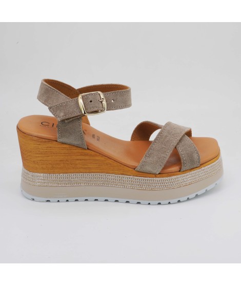 Sandali CINZIA Soft CA386652 con fasce in camoscio e rafia intrecciata, comodi e stilosi.