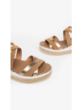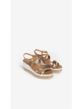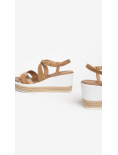 Sandali Zeppa in morbido Camoscio e fascia in pelle laminata  .