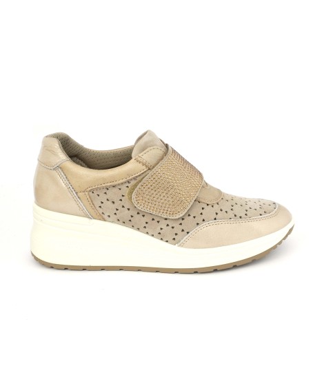 Enval Soft Sneakers Comfort Doppio Velcro Tessuto Elastico Taupe