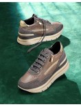 Grunland Sneakers City Zeppa Alta con Zip Pelle Taupe