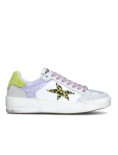 Méliné Sneakers Bassa Fondo Sfumato Glitter Camoscio Bianco Lime
