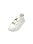 Sneakers realizzate in pelle vegana con riporti e accessori oro.