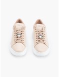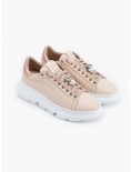In morbida Nappa nude, logo stampato, charms gufo in metallo, spoiler in pelle metal oro rosato , colletto in laminato .