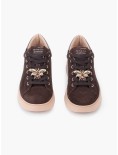 In morbida pelle scamosciata e idrorepellente, logo stampato, charms Gioiello in metallo, spoiler in pelle metal , colletto in laminato .