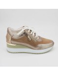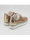 Sneaker con Zeppa alta di Cinzia Soft realizzata in pelle laminata e camoscio traforato .