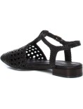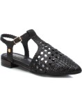 Ballerina da donna modello slingback realizzate in pelle laminata intrecciata di alta qualità con finitura metallica.