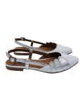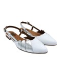 Bueno Slingback Ballerina Braccialetto Fibbia Laminata Bianco Argento