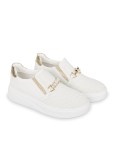 Sneakers Slipon realizzate in pelle vegana con riporti e accessori oro.