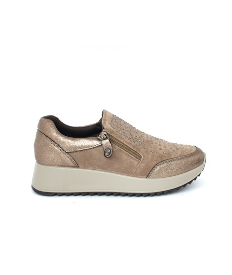 Sneakers donna Sportive modello Slipon 36427 realizzate in camoscio,Profili in Naplak e applicazioni di strass