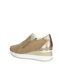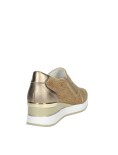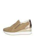 Slip on con zeppa, tomaia in camoscio traforato, sottopiede anatomico, suola in gomma leggera e flessibile.