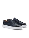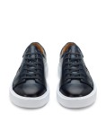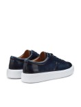 Le sneakers di Guardiani sono realizzate in pelle tamponata dalla tonalità blu. Il modello è rifinito con il logo del brand applicato a fuoco sul lato esterno.