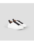 Il riferimento al famoso stadio inglese è chiaro: sportività ed eleganza si fondono per dare vita a questo modello. Le Wembley rappresentano l’equilibrio tra comodità, stile e sobrietà, ai quali si aggiunge modernità grazie ai dettagli unici che fanno la differenza, in questa variante in pelle liscia in bianco con dettagli neri.