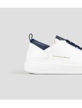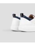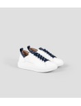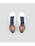 Il riferimento al famoso stadio inglese è chiaro: sportività ed eleganza si fondono per dare vita a questo modello. Le Wembley rappresentano l’equilibrio tra comodità, stile e sobrietà, ai quali si aggiunge modernità grazie ai dettagli unici che fanno la differenza, in questa variante in pelle liscia in bianco con dettagli blu.