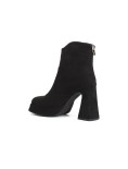 Tronchetto da donna in microfibra con cerniera sul retro per agevolare la calzata. calzatura dal perfetto stile seventies. il tacco altezza 95mm insieme al plateau di 18mm donano equilibrio tra altezza bellezza e comodità.