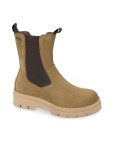 Tronchetti per Donna Valleverde realizzati in pelle colore daino, allaccio tramite lampo lato interno con elastico laterale. Fodera in tessuto marrone, sottopiede in pelle marrone, fondo in gomma beige con zeppa 4,5cm.