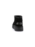 Realizzato in morbido camoscio nero, questo scarponcino è l'alleato perfetto per la stagione fredda. L'interno è foderato in calda lana, che mantiene il piede caldo e avvolto anche nelle giornate più rigide.