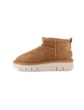Realizzato in morbido camoscio cuoio, questo scarponcino è l'alleato perfetto per la stagione fredda. L'interno è foderato in calda lana, che mantiene il piede caldo e avvolto anche nelle giornate più rigide.