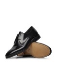 Derby liscio realizzato in pregiato vitello spazzolato e completato da un morbidissimo fondo in cuoio. Colore: Nero Materiale: Vitello