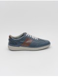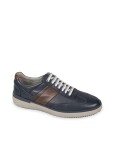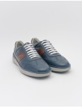 Sneakers uomo navy, con punta traforata per una maggiore trasportabilità' del piede e con inserto laterale a contrasto marrone scuro. Presenta sul lato esterno il logo a stampa pressione tono su tono. Dettaglio a contrasto marrone scuro sul tallone.