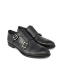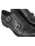 Stringate Artigianali Uomo Modello Monk con due fibbie e puntale realizzato in Vitello pieno Fiore Sfumato .