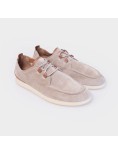 Sneakers in pelle di camoscio pigmentato sabbia dalle linee essenziali, così versatili e comode da diventare subito il tuo must have,
